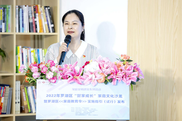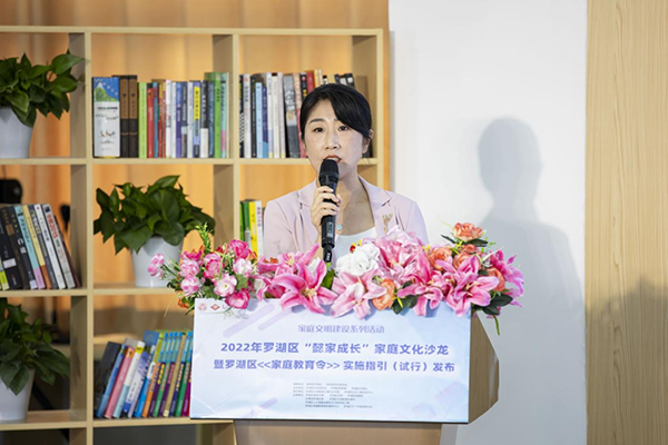 读特客户端·深圳新闻网2022年05月16日讯(记者 吴艳 通讯员 敖凌子)5月15日下午,由深圳市文明办、深圳市妇女联合会指导,罗湖区妇女联合会、罗湖区教育局、罗湖区文明办联合主办的2022年“懿家成长”家庭文化沙龙暨罗湖区《家庭教育令》实施指引(试行)发布活动在大望社区党群服务中心成功举办。