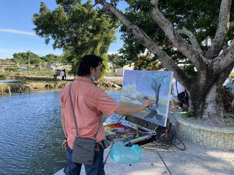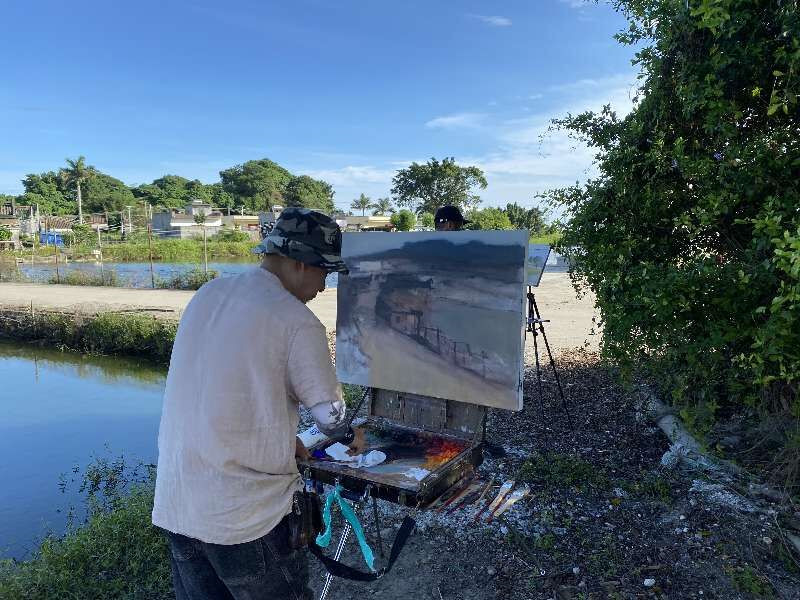 与此同时,同行的12名大芬油画村画家分别选择三江湿地、田心村古建筑群落、鹭影禾香风光示范带、围寮村等场景进行现场采风写生。部分作品将作为礼物,赠予联安镇,以支持乡镇文化建设。