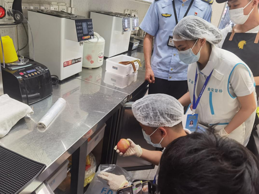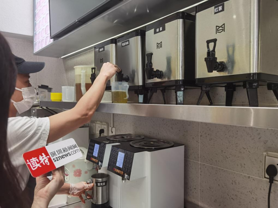 该店员工现场演示了饮品的制作过程,执法人员表示流程基本符合食品安全规范,并提醒员工食品原料应在2至3小时内使用完毕,避免变质。