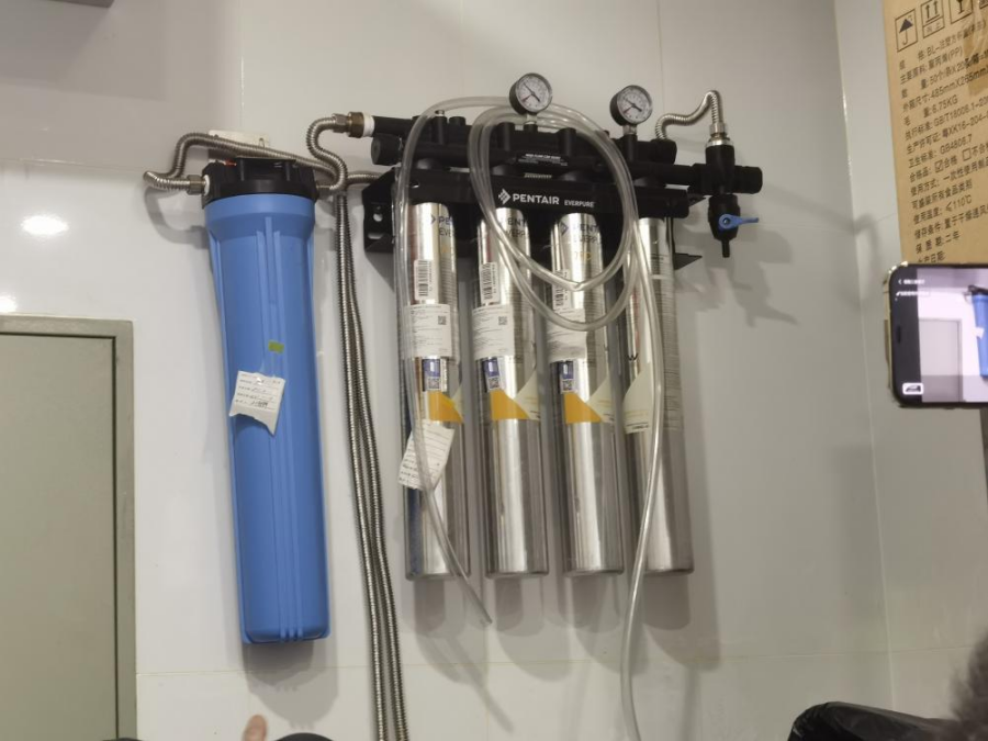 执法人员接着对该店使用的制冰机与滤水系统进行检查,经检查,该店的滤水器均有标签记录滤芯更换日期,符合食品安全规定。但执法人员同时注意到,该店的制冰机旁堆放着大量杂物,应尽快清理干净,避免在拿取冰块时造成污染。