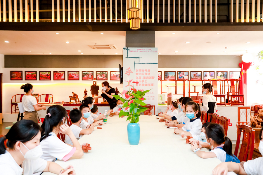 之后的市民巡礼活动通过“走访参观+消费教育互动课堂+消费宣讲+体验活动”的形式,10余组亲子家庭近距离了解红木的发展历史、种类和分布、挑选辨别及红木家具制作工艺等消费知识。大家还在专业老师的指导下动手制作了榫卯结构的小家具,体验传统榫卯工艺,感受红木文化,感悟工匠精神,参与家庭纷纷表示“文化+消费”展现出不一样的传统文化魅力。