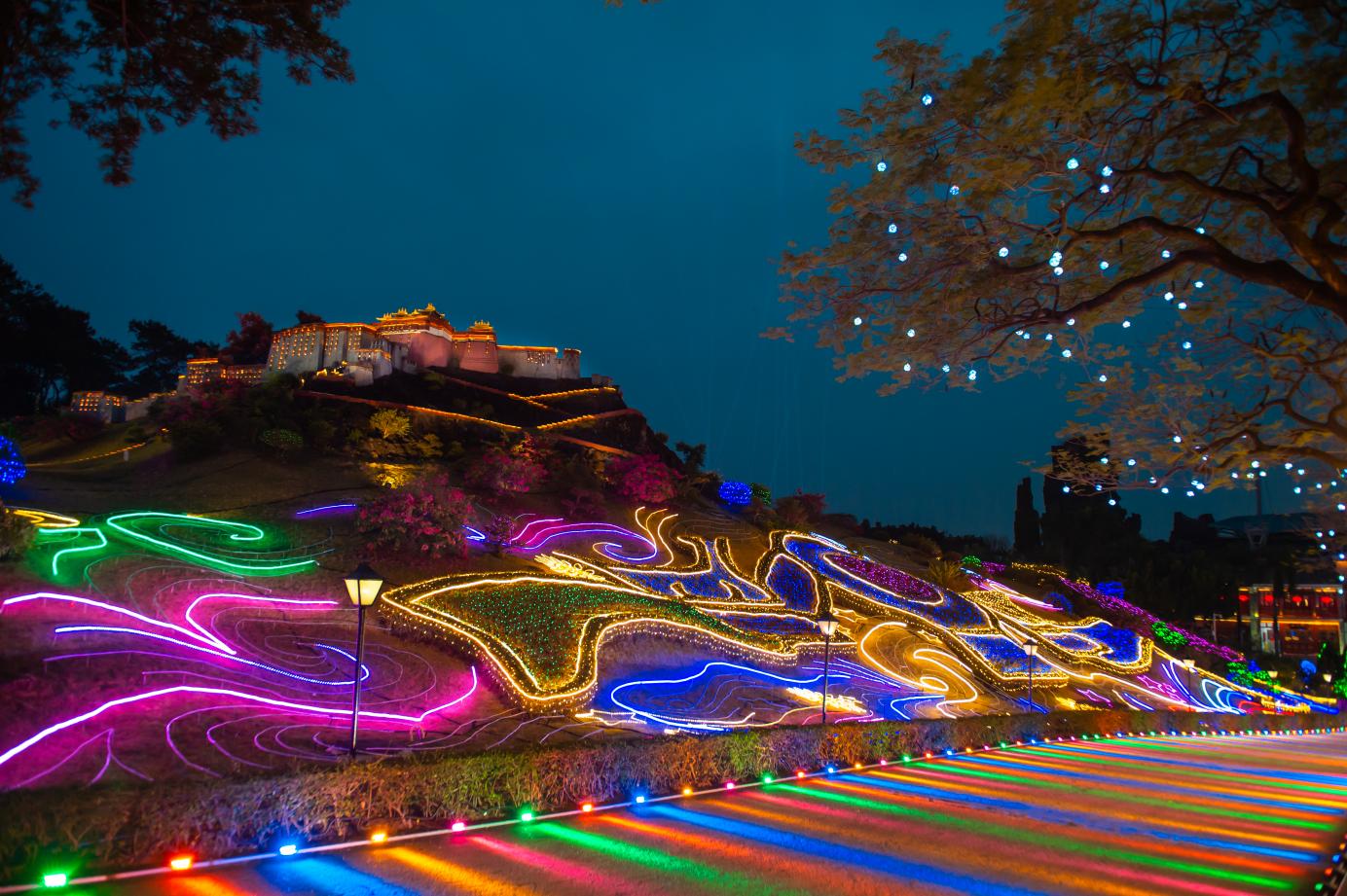 据了解,“锦绣星光不夜城”是锦绣中华首次打造的春季大型节庆活动,将景区微缩景点亮化,通过融入灯光创意,贴合区域文化属性,融合原有的地理空间和独特文化,实现旅游场景从“白”到“黑”的创新转化,营造以游客“沉浸体验”为特色的游玩场景。1000多米长城犹如一条绚丽的巨龙横卧山顶,周围“鲸鱼”跃动、“星光”起舞、“行星”流转,近50处拍照打卡点美轮美奂,重塑景区夜游产品,极大彰显出景区的文化内涵和历史气韵,流光溢彩霓虹海,火树银花不夜天。