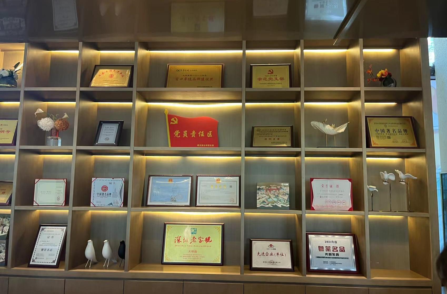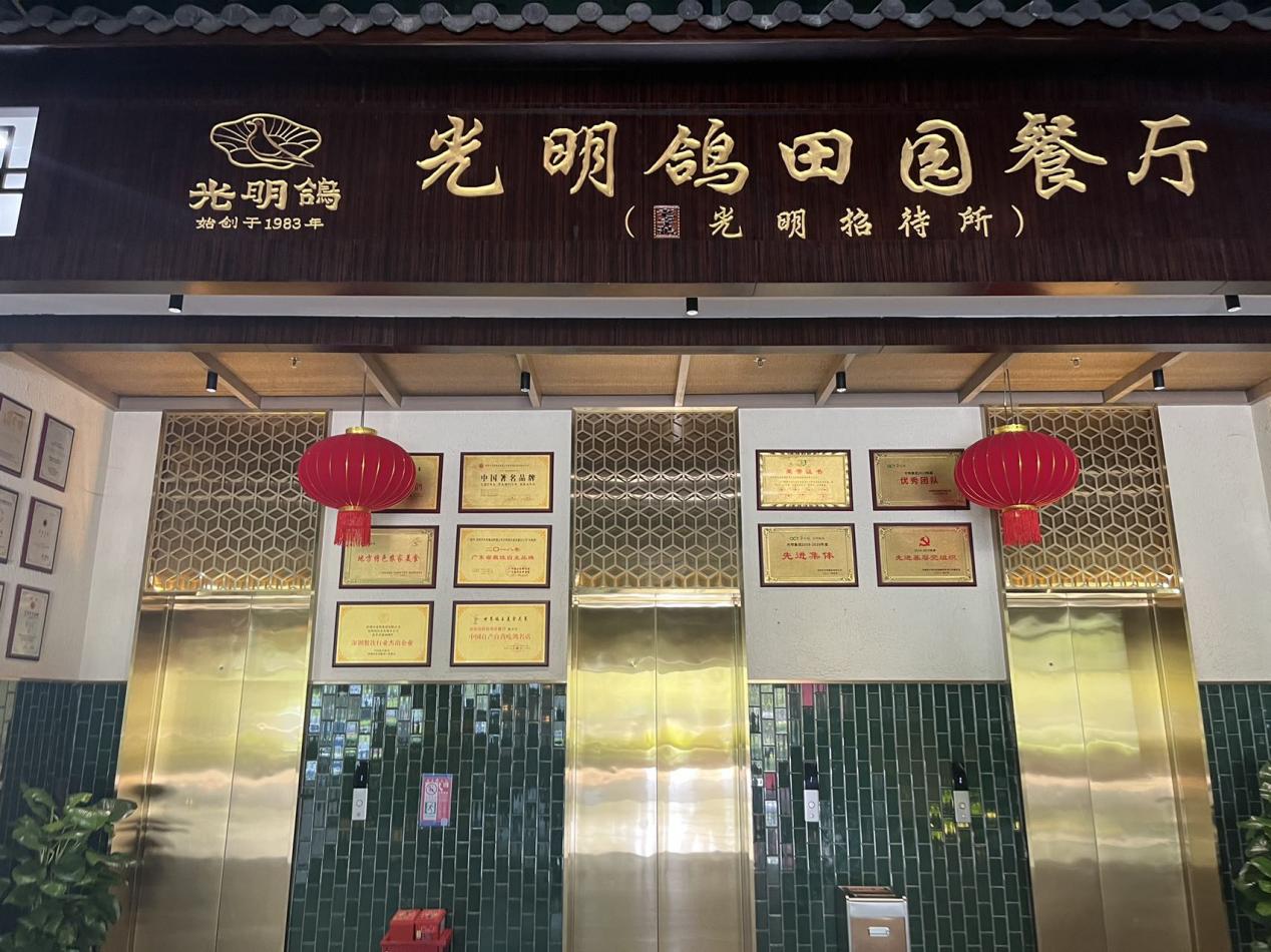 据介绍,“光明招待所”于1983年开业,经过40年的成长,已逐渐成为深圳光明的“美食招牌”,深受广大市民朋友们喜爱。记者看到,用餐区域墙壁上摆放了餐厅所获的部分荣誉,包括“深圳老字号”“粤菜名品”“中国自产自营吃鸽名店”等。