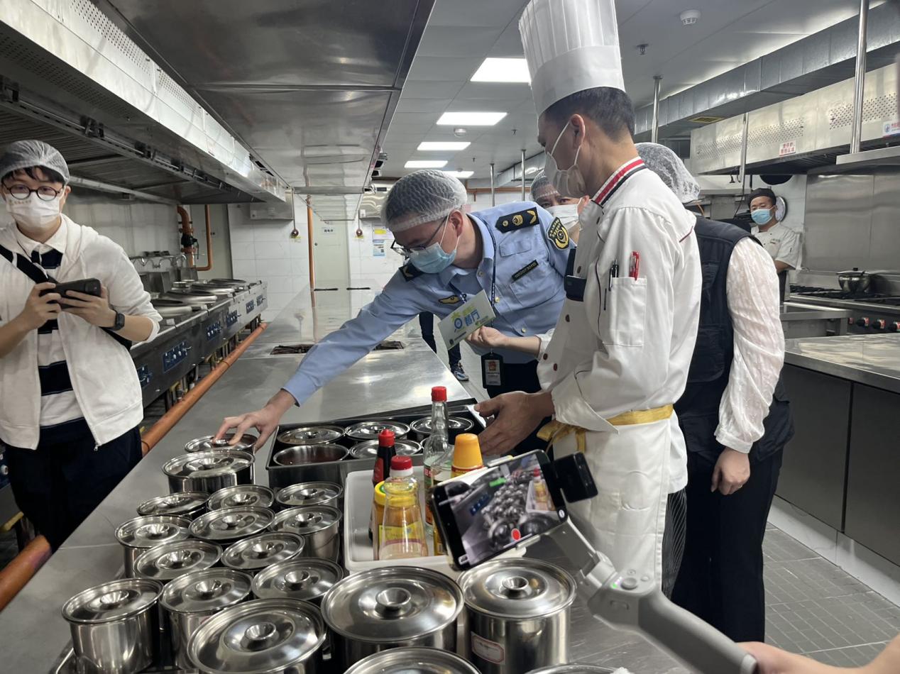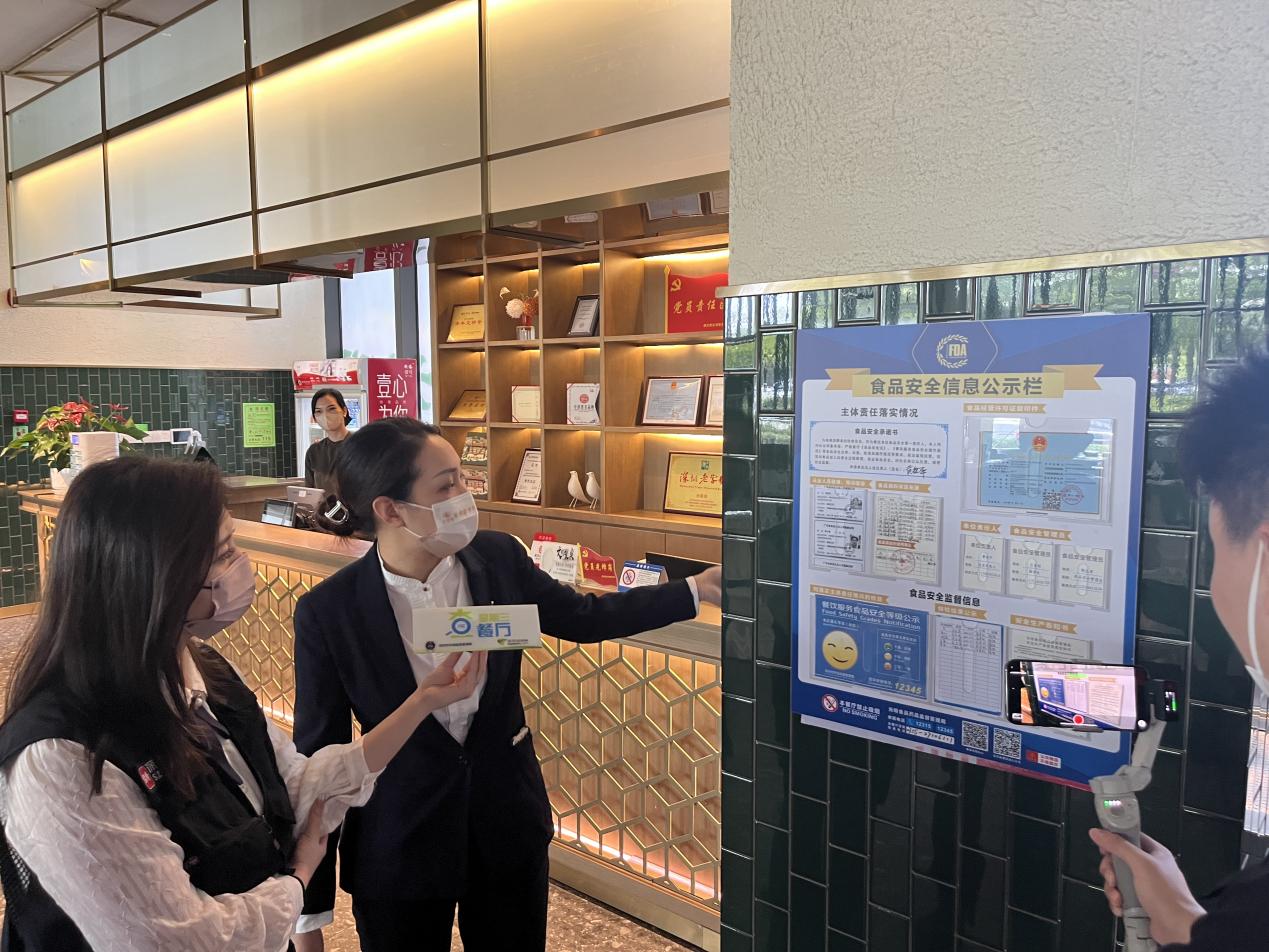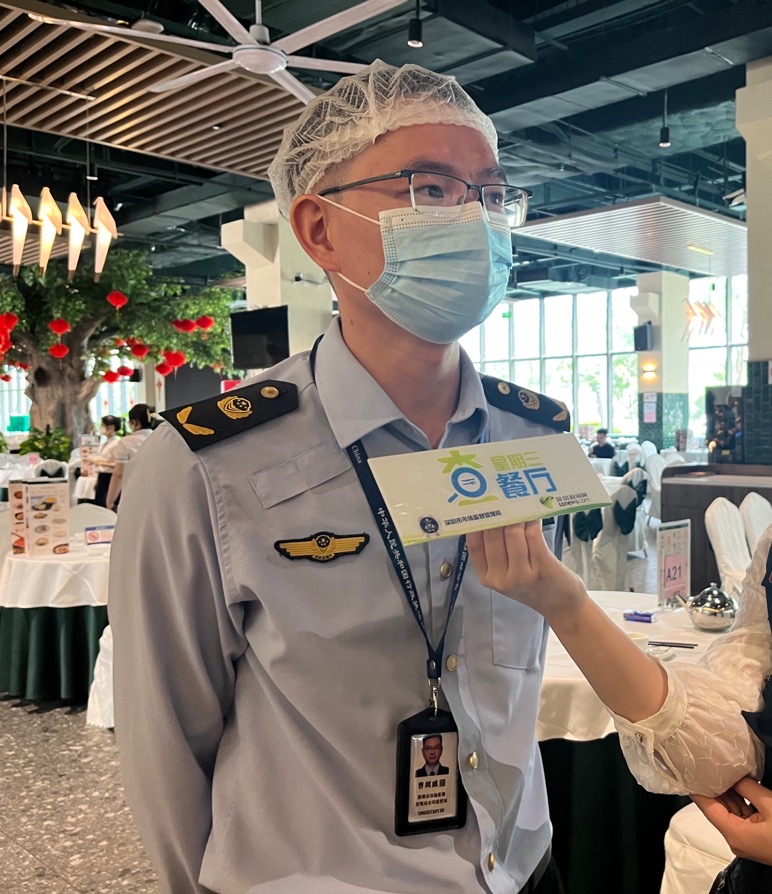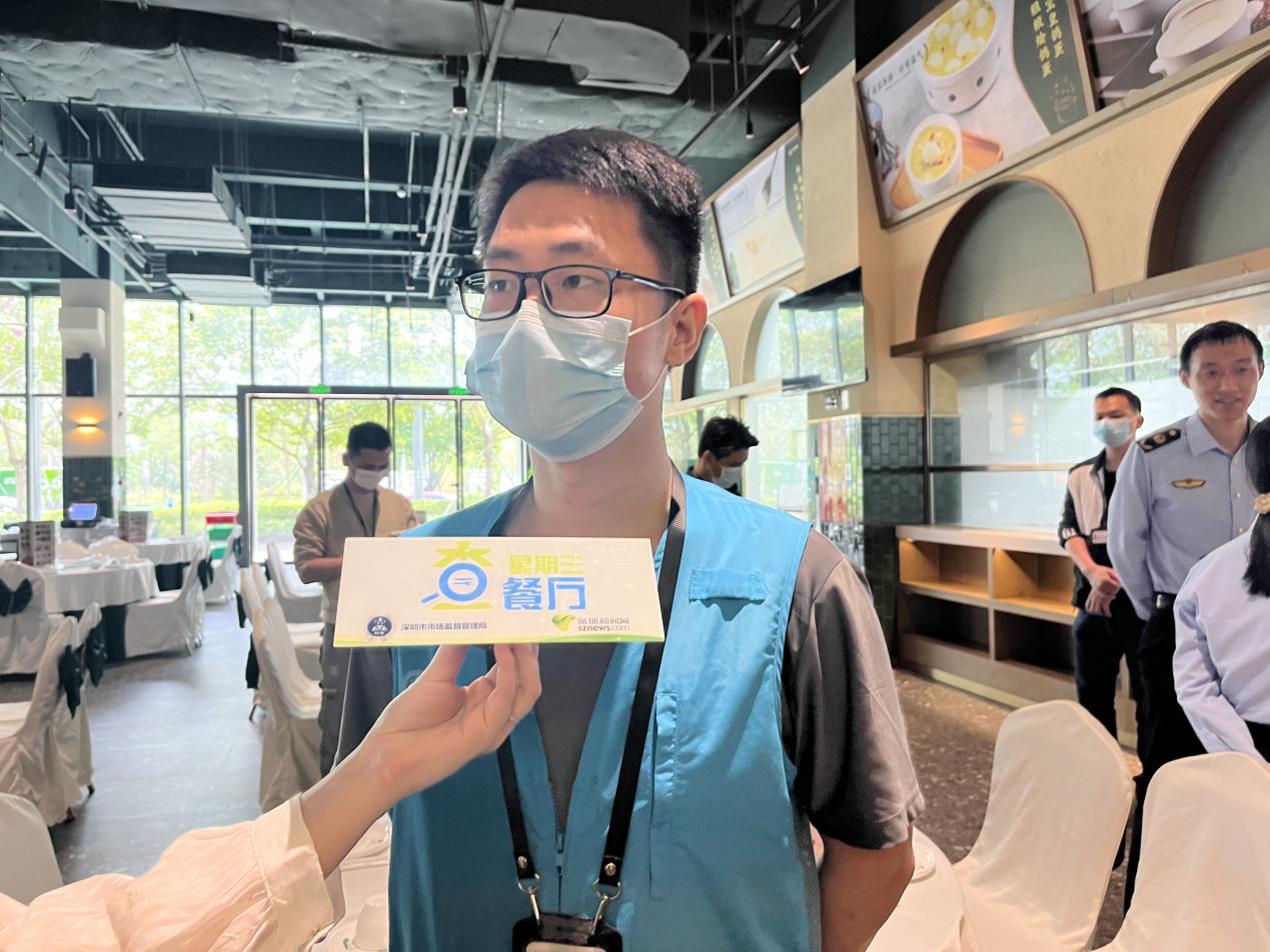根据食品安全相关法律法规,执法人员依次对该餐厅的证照资质、后厨卫生、标签标识、索证索票等情况进行检查。本次出镜的执法人员是来自深圳市市场监督管理局光明监管局的曾剑威、刘文军。
