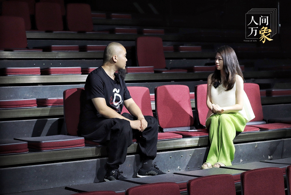 洪金雕在深圳大学黑匣子剧场接受深圳新闻网记者魏坤伦采访。(张玲 摄)