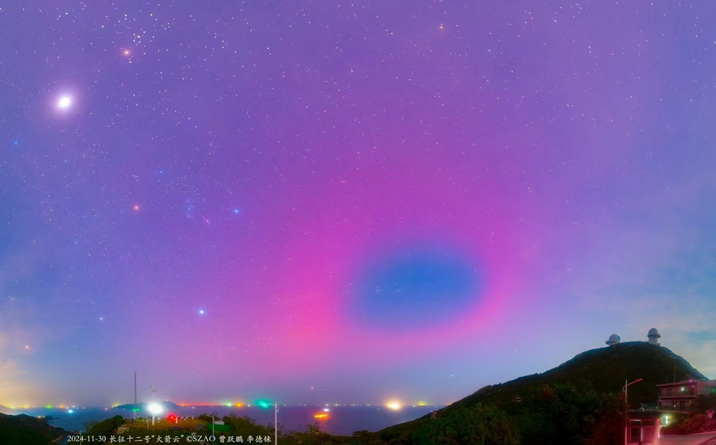 IN视频|火箭升空尾焰浪漫 深圳天文台记录到极光般闪耀紫色天空