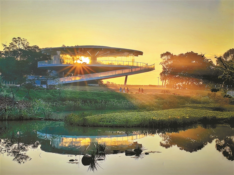 广东内伶仃福田国家级自然?;で芾砭值摹昂焓魇榘伞保钍芄诨队?。这里融合福田红树林、黑脸琵鹭和新洲红树碧道、水文化等特色元素,在满足展示、休闲、阅读、便民等功能同时,也讲述着红树、候鸟、城市、湿地相依的动人故事。