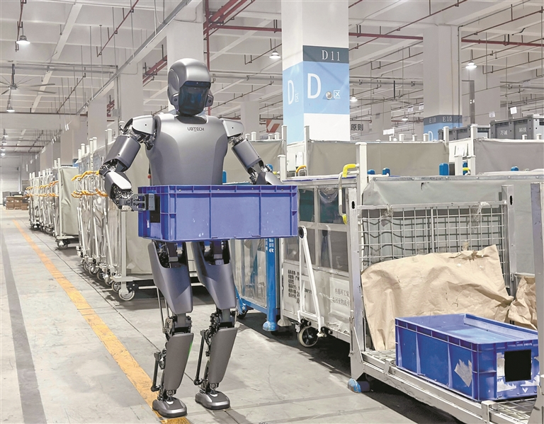 优必选人形机器人进厂实训。深圳特区报记者 何龙 摄